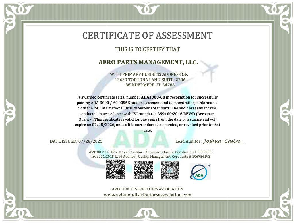 Aero Parts Management’s Quality Program is fully aligned with FAA AC 00-56B quality assurance standards, reinforcing our commitment to regulatory compliance, traceability, and operational excellence across the aerospace supply chain. Quality is not treated as a checkpoint—it is embedded into every workflow, decision, and partner relationship to ensure consistent, audit-ready performance and zero-defect delivery.
