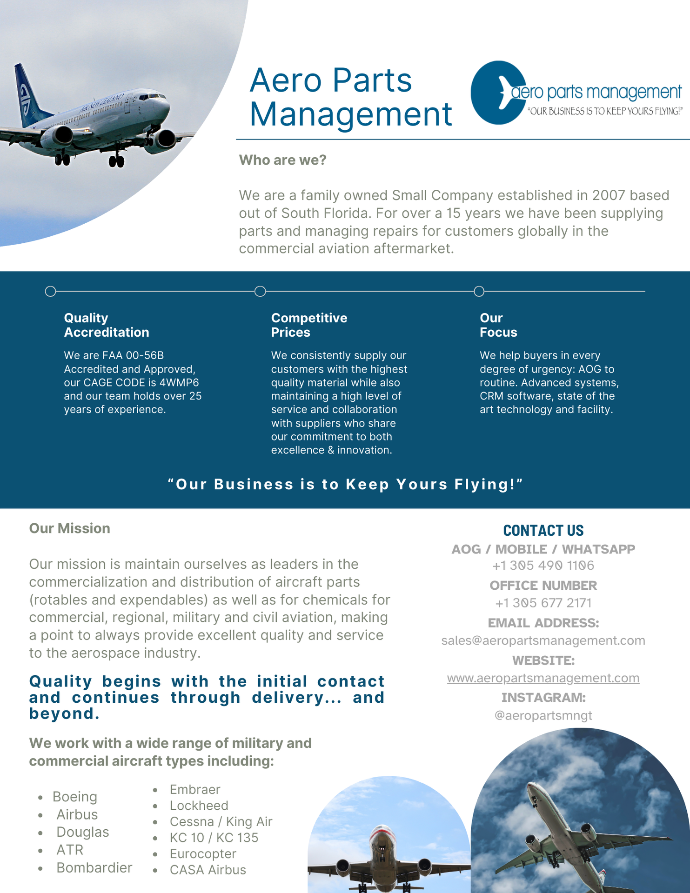 Through disciplined governance, continuous oversight, and operational transparency, Aero Parts Management delivers a quality ecosystem that accelerates reliability, protects compliance, and scales with customer demand. Our objective is simple: predictable excellence, measurable performance, and uncompromised aviation safety at every transaction layer.